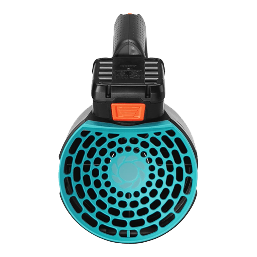 De PowerJet 18V P4A kant-en-klare set van GARDENA is een accu-aangedreven bladblazer waarmee u de tuin flexibel, snel en effectief kunt opruimen. Dit veelzijdige product is ideaal voor gebruik in de tuin en rondom het huis.De bladblazer maakt niet alleen indruk met zijn slimme en functionele ontwerp, maar vooral met zijn opmerkelijk krachtige blaasprestaties. Of het nu gaat om bladeren, kleinere takken of gemaaid gras, de PowerJet blaast ze snel, krachtig en efficiënt weg. Dankzij het innovatieve ontwerp en het hoge luchtdebiet ziet uw tuin er in een mum van tijd verzorgd en opgeruimd uit. De blazer maakt indruk met een maximaal luchtvolume van 7,9 kubieke meter per minuut voor geweldige blaasprestaties en stelt u in staat een gebied tot 400 vierkante meter schoon te maken.Afhankelijk van gebruik en tuintoepassing kan het toerental van de bladblazer individueel worden aangepast. Dankzij het lage gewicht is het werken met de bladblazer uiterst comfortabel en gemakkelijk, zelfs over de volledige maximale looptijd van 13 tot 23 minuten, afhankelijk van het ingestelde vermogen. De blazer is ook zo goed uitgebalanceerd dat er geen vermoeidheid is in de polsen en armen. Dit wordt nog versterkt door de uitstekende ergonomie van het product. Een duidelijk zichtbare LED-display op het apparaat toont het huidige laadniveau van de accu.Deze set biedt u nog meer: de set bevat ook nog een extra, bevestigbaar precisiemondstuk. Dit mondstuk vergroot het bereik van de bladblazer, waardoor u nog preciezer kunt werken in die lastig te bereiken hoeken in uw tuin en biedt meer flexibiliteit bij het aanbrengen. De krachtige, compacte en handige GARDENA accu-bladblazer is daarom ideaal voor een breed scala aan schoonmaakklussen.De Accubladblazer PowerJet 18V P4A solo wordt geleverd zonder accu en oplader. Hij is compatibel met alle 18V-accu’s van de POWER FOR ALL ALLIANCE, een van de grootste merkoverschrijdende accu-allianties van toonaangevende fabrikanten. Deze accu’s kunnen worden gebruikt voor tal van apparaten in huis en tuin. U bespaart dus geld en blijft flexibel! Koop je het product liever met het accusysteem? Geen probleem – dan is de gebruiksklare set de juiste keuze voor u. Passie aangedreven door GARDENA – Tuingereedschap op accu dat u de vrijheid geeft om te creëren.