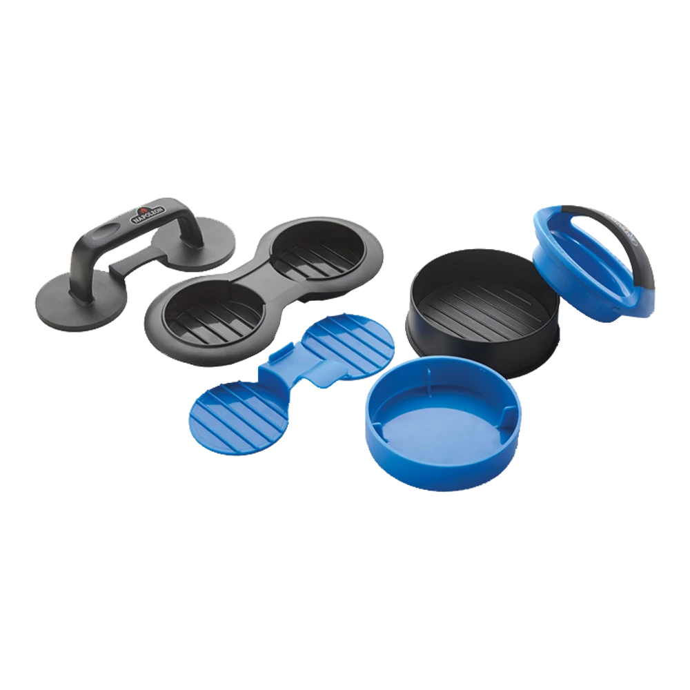 De ultieme 3 in 1 hamburgerpers voor perfect gevormde en gevulde burgers, mini-burgers en klassieke burgers, plakt niet en is vaatwasserbestendig.