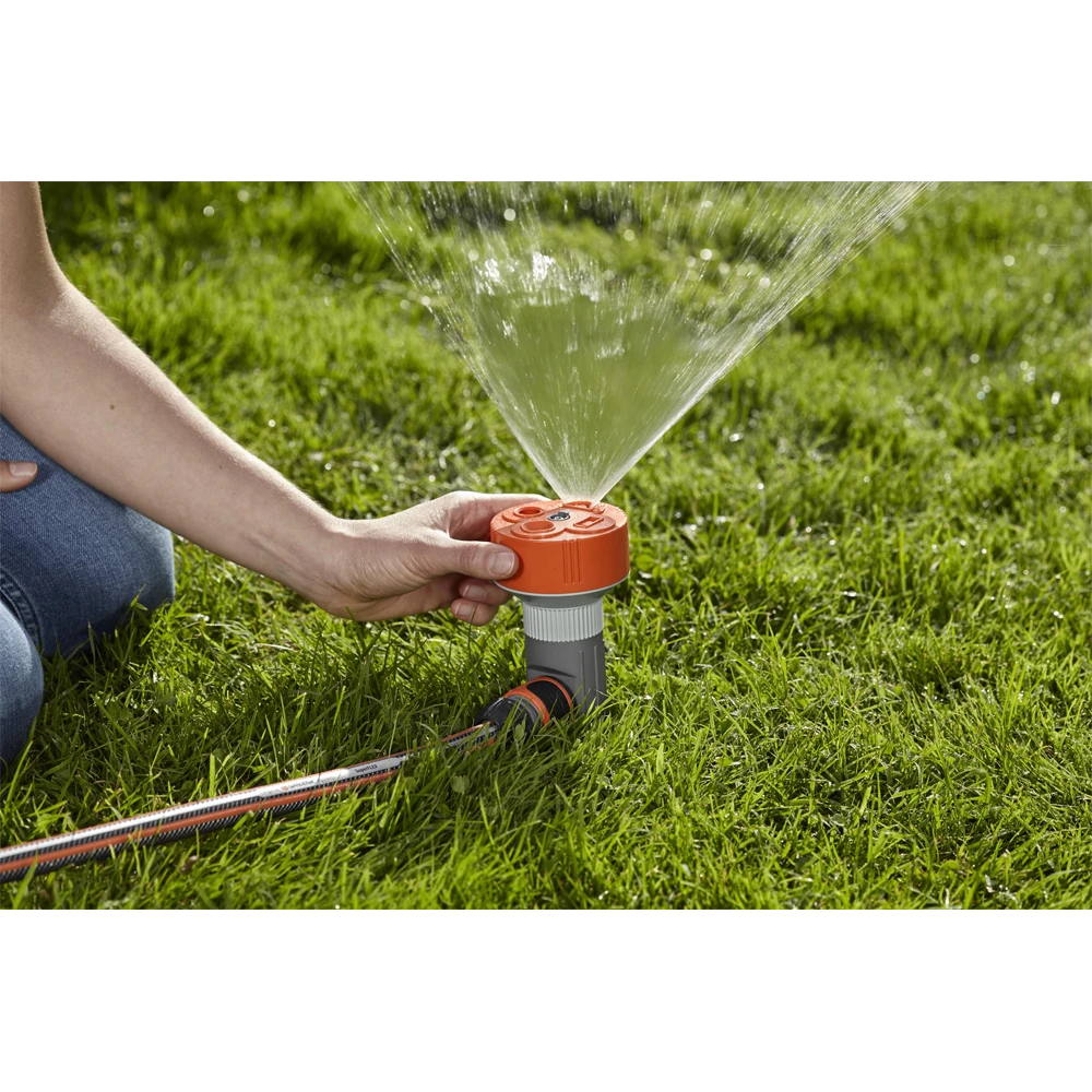 De GARDENA Multi 4-sproeier Twist bestaat uit een sproeier voor het besproeien van vier verschillende zones: cirkel, halve cirkel, vierkant en rechthoek. De besproeiingszones kunnen worden geselecteerd met de draaiknop op de sproeier. Het bijpassende GARDENA Slangstuk (art. nr. 915) wordt meegeleverd in dit complete pakket. De besproeiingszones hebben de volgende afmetingen: Volledige cirkel: ø max. 10 m / 80 m2; Halve cirkel: r = max. 8 m / 100 m2; Vierkant: max. 8 x 8 m / 64 m2; Rechthoek: max. 16 x 2 m / 32 m² De Multi 4-sproeier wordt stevig op een spike bevestigd. Hiermee kunt u de GARDENA Multi 4-sproeier Twist gemakkelijk en stevig in het gazon of de grond plaatsen. Ook kunt u de sproeier zonder problemen verwijderen en ergens anders plaatsen. Met de GARDENA Classic Multi 4-sproeier Twist kunt u uw tuin optimaal besproeien op basis van de vereisten.