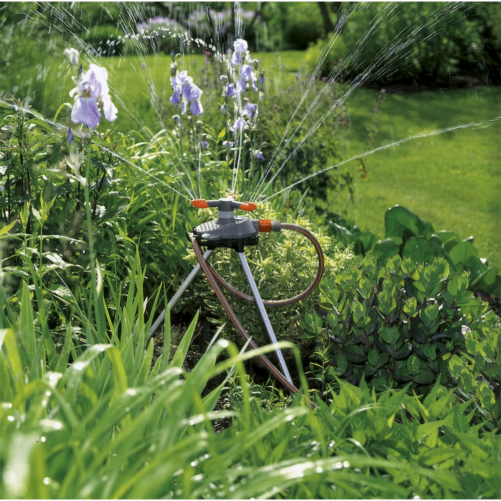 De GARDENA Classic cirkelsproeier Samba is een praktische sproeier voor kleine tot middelgrote oppervlakken. U kunt gebieden van maximaal 250 m² besproeien met een sproeidiameter van 3 m tot maximaal 18 m. De sproeier heeft draaiende, zeer precieze spuitmonden, die zorgen voor een gelijkmatige verdeling van het water, zonder plassen. De stevige basis garandeert een stabiele werking en mobiel gebruik. Met praktisch uitneembaar vuilfilter. Besproeien kan zo gemakkelijk zijn.