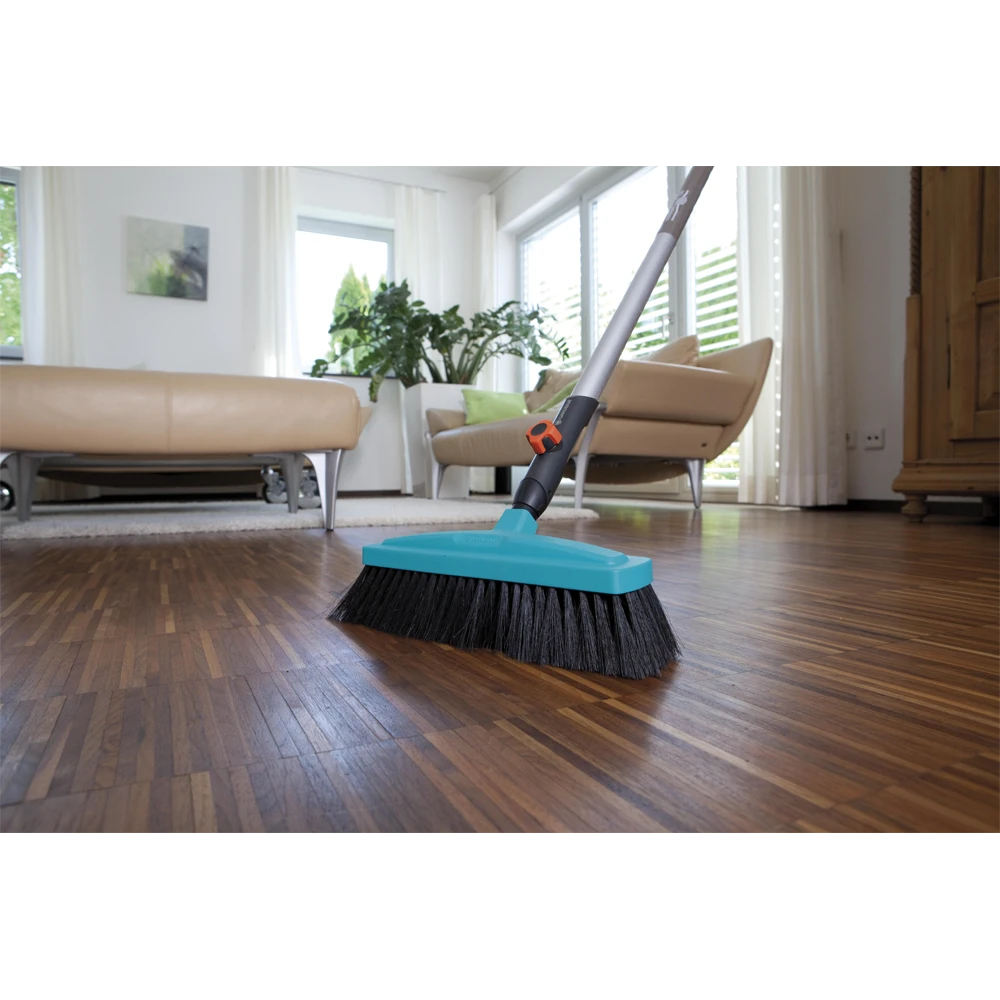De GARDENA combisystem-huishoudbezem is ideaal voor gebruik in huis. Dankzij een werkbreedte van 34 cm en een slagvaste houder van hoogwaardige kunststof kan deze bezem voor een groot aantal doeleinden worden gebruikt. Praktisch: de randen zijn afgerond om het meubilair te ontzien. De hoogwaardige borstels van een mix van polypropyleen en paardenhaar reinigen optimaal en werken uiterst efficiënt. De huishoudbezem is geschikt voor alle stelen van het GARDENA combisystem, waarbij GARDENA een steellengte van 130 of 150 cm adviseert, afhankelijk van uw lichaamslengte.
