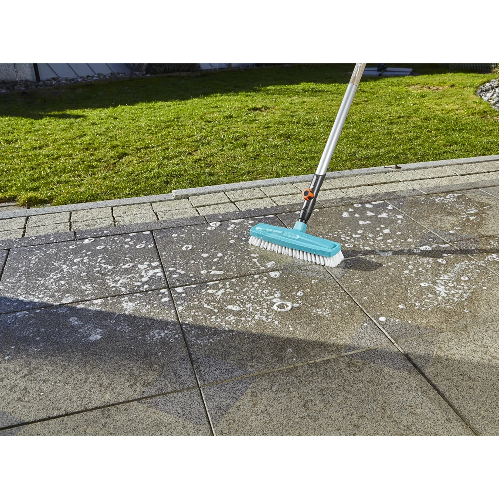 De GARDENA combisystem-schrobber is ideaal voor gebruik in huis. Dankzij de uiterst elastische polypropyleen borstels en een werkbreedte van 30 cm, plus een houder van slagvast kunststof, is de schrobber zelfs geschikt voor ingelopen vuil of vochtig materiaal. Praktisch: de randen zijn afgerond om het meubilair te ontzien. De schrobber is geschikt voor alle stelen van het GARDENA combisystem, waarbij GARDENA een steellengte van 130 of 150 cm adviseert, afhankelijk van uw lichaamslengte. De garantieperiode is 25 jaar.