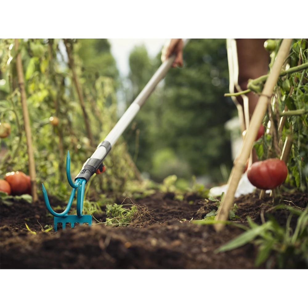 Voor veel tuinierders is regelmatig wieden een erg saai en weinig populair klusje. Maar met de gecombineerde cultivatorhark van GARDENA wordt het losmaken en verwijderen van onkruid een waar genot. Het maakt het essentiële tuinieren veel gemakkelijker en aangenamer voor uw rug en is milieuvriendelijk. Het tuingereedschap combineert een cultivator, die wordt gebruikt voor het wieden en beluchten van de grond in het tuinbed, met een hark om onkruid direct te verwijderen. Voor alle tuinierders die veel belang hechten aan de puur mechanische en milieuvriendelijke verwijdering van onkruid, is dit een ideale oplossing. Het gereedschap biedt het hoogwaardige vakmanschap dat u van GARDENA gewend bent. De cultivatorhark kan worden gecombineerd met elk van de afzonderlijk verkrijgbare combisystem stelen van GARDENA.