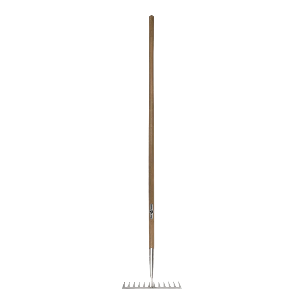 Hou jij van een egaal oppervlak in je tuin of rondom huis? Met de rvs tuinhark van Dutch Garden lukt het je eenvoudig om de grond te egaliseren. Gebruik de platte 12 tanden om het grind of de grond egaal te harken. Door het gebruik van roestvrijstaal weet je zeker dat je nog jarenlang geniet van deze luxe tuinhark met houten steel van 150 centimeter.