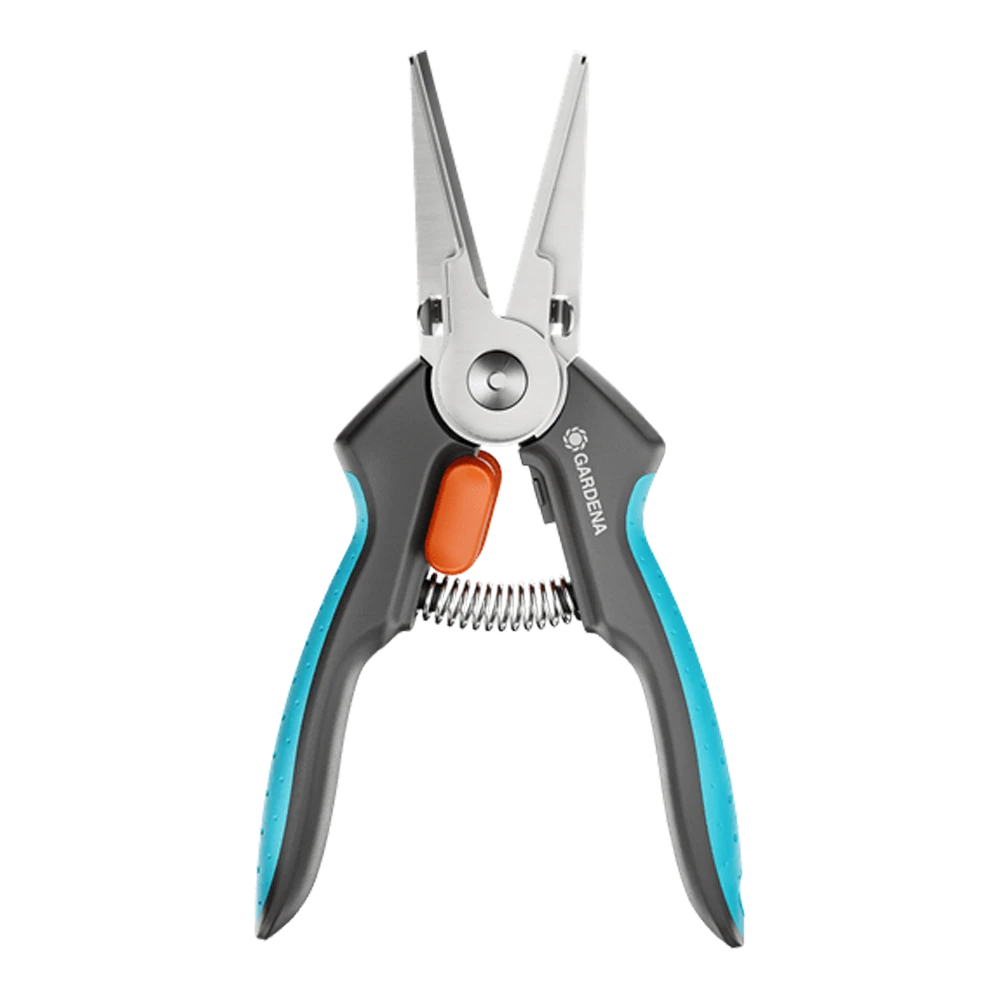 De FreshCut van GARDENA is bijzonder geschikt voor het oogsten van verse kruiden, bessen of snijbloemen. De nauwe, puntige, precieze messen zijn gemaakt van duurzaam, roestvrij staal en zullen je verbluffen bij iedere knip. Met de FreshCut kan je erg netjes en nauwkeurig knippen, tot aan het puntje. De oogstschaar werkt ook erg goed in nauwe plekjes, zodat basilicum oogsten en bloemen koppen erg makkelijk gaat. De schaar ligt comfortabel en veilig in de hand, dankzij de slipvaste ErgoTec-handgrepen met zachte grip. Om de schaar veilig op te bergen en vervoeren plaats je de veiligheidskap over de gesloten messen. Het vergrendelingsmechanisme laat je de schaar met één hand eenvoudig, stevig vergrendelen en weer ontgrendelen. Wat je ook knipt: de voedselveilige messen laten geen smaak of geur achter. De schaar is vaatwasmachinebestendig, wat hem erg gemakkelijk te reinigen maakt. GARDENA geeft een lange fabrieksgarantie van 25 jaar op het FreshCut-kwaliteitsproduct, gemaakt in Duitsland na registratie op gardena.com/registration binnen 3 maanden na aankoop. Ga voorzichtig om met het product. GARDENA Micro-Cutting. Geef je oogst de respect die het verdient, met ons assortiment precisiegereedschappen.