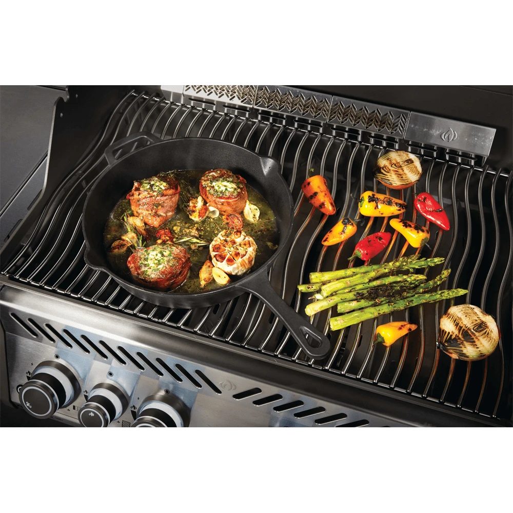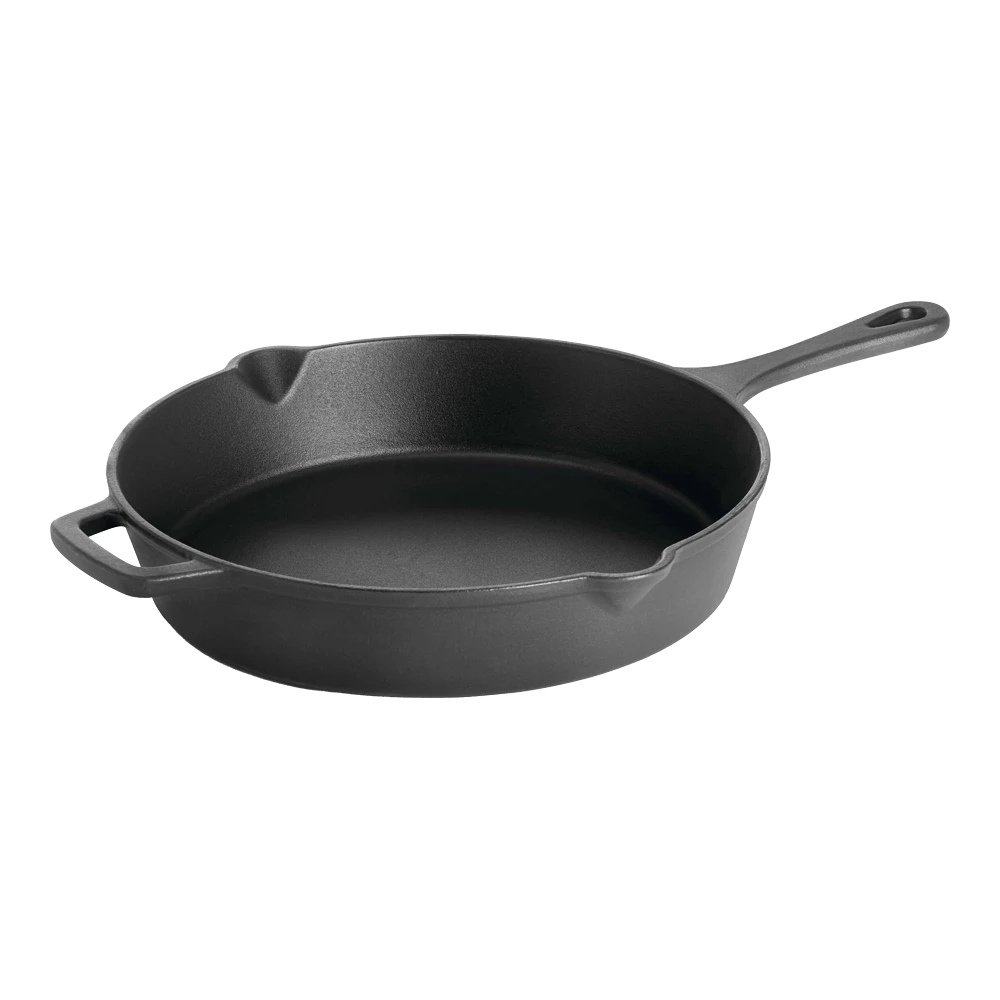 Sommige pannen zijn te kwetsbaar voor de barbecue, deze gietijzeren koekenpan met een diameter van 30cm is daarentegen precies goed. Deze koekenpan zorgt voor een goede warmteverdeling en houdt de warmte lang vast. Van groenten tot bijgerechten tot desserts: deze gietijzeren koekenpan is geschikt voor in de oven, op het fornuis, de barbecue, de zijbrander, direct op houtskool of zelfs boven vuur. De koekenpan heeft een emaillen oppervlak wat een natuurlijke antiaanbakwerking heeft, en geïntegreerde schenktuiten om sappen en sauzen gemakkelijk uit te schenken. Of u nu een ontbijt of een diner klaarmaakt, de gietijzeren koekenpan is een veelzijdige aanvulling op uw binnen- of buitenkeuken.
