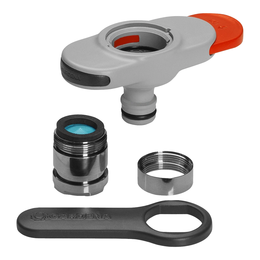 De kraanaansluiting voor binnenkranen van GARDENA maakt water geven op balkon en terras heel makkelijk. U hoeft niet meer met een gieter op en neer te lopen. De adapter aan de kraan bevestigen kan in slechts een paar eenvoudige stappen. Het aandraaien van de draad is kinderspel met de meegeleverde sleutel. Plaats vervolgens de adapter op het draad en druk op de schuifregelaar. Verschuif hem om de adapter aan het draad te bevestigen. Zodra dat is gebeurd, kan een slang worden bevestigd. Als u de schuifregelaar in de tegenovergestelde richting beweegt, wordt de adapter losgemaakt en kan deze gemakkelijk worden verwijderd. De adapter is compatibel met alle conventionele kranen met M 24 x 1 binnen- of M 22 x 1 buitendraad (niet geschikt voor niet onder druk staande of lage druk boilers). De kraanaansluiting is een essentieel accessoire voor binnenkranen voor grote hoeveelheden water, bijvoorbeeld om het aquarium of peuterbadje te vullen.