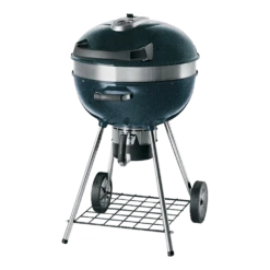 Het in drie hoogten verstelbare, klapbare en geëmailleerde gietijzeren WAVE™ (Ø 57 cm) grillrooster zorgt voor een gelijkmatige en langdurige warmte verdeling, terwijl de RVS-warmteverdeler op het houtskoolrooster de warmte gelijkmatig verdeelt en verbrand houtskool naar de as-opvangpan transporteert. Met de bijgeleverde diffuser plate met houtskoolring is eenvoudig een indirecte hitte-zone te creëren en vermindert het brandstof gebruik. De temperatuur is eenvoudig af te lezen op de precieze ACCU PROBE™ deksel thermometer.