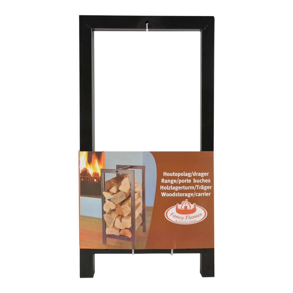 Met deze trendy houtopslag haal je iets bijzonders in huis. Naast opslag voor het hout, kan deze ook eenvoudig als drager worden gebruikt. De drager kan buiten gevuld worden met hout, en dankzij de handgreep in het midden, makkelijk meegenomen worden naar binnen om bij de open haard geplaatst te worden.