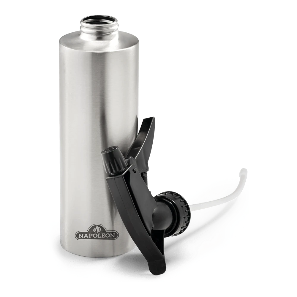 Vul de RVS sprayfles met een vloeistof naar keuze om uw gegrilde gerechten tijdens het barbecueën te bespuiten. De verstel- en vergrendelbare spuitkop kan zowel fijne nevel als gerichte stralen spuiten om uw grillroosters te bespuiten en uw gerechten mals en sappig te houden. De RVS sprayfles heeft een duurzaam ontwerp en is vaatwasserbestendig.