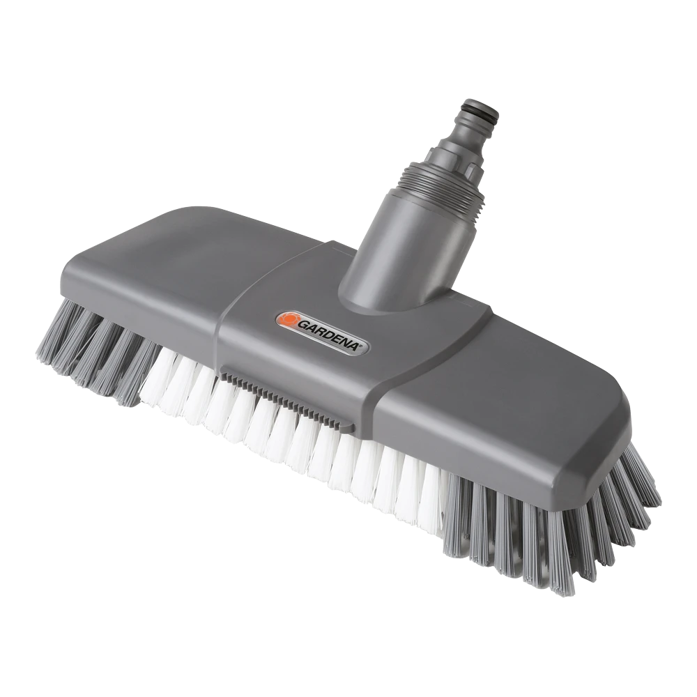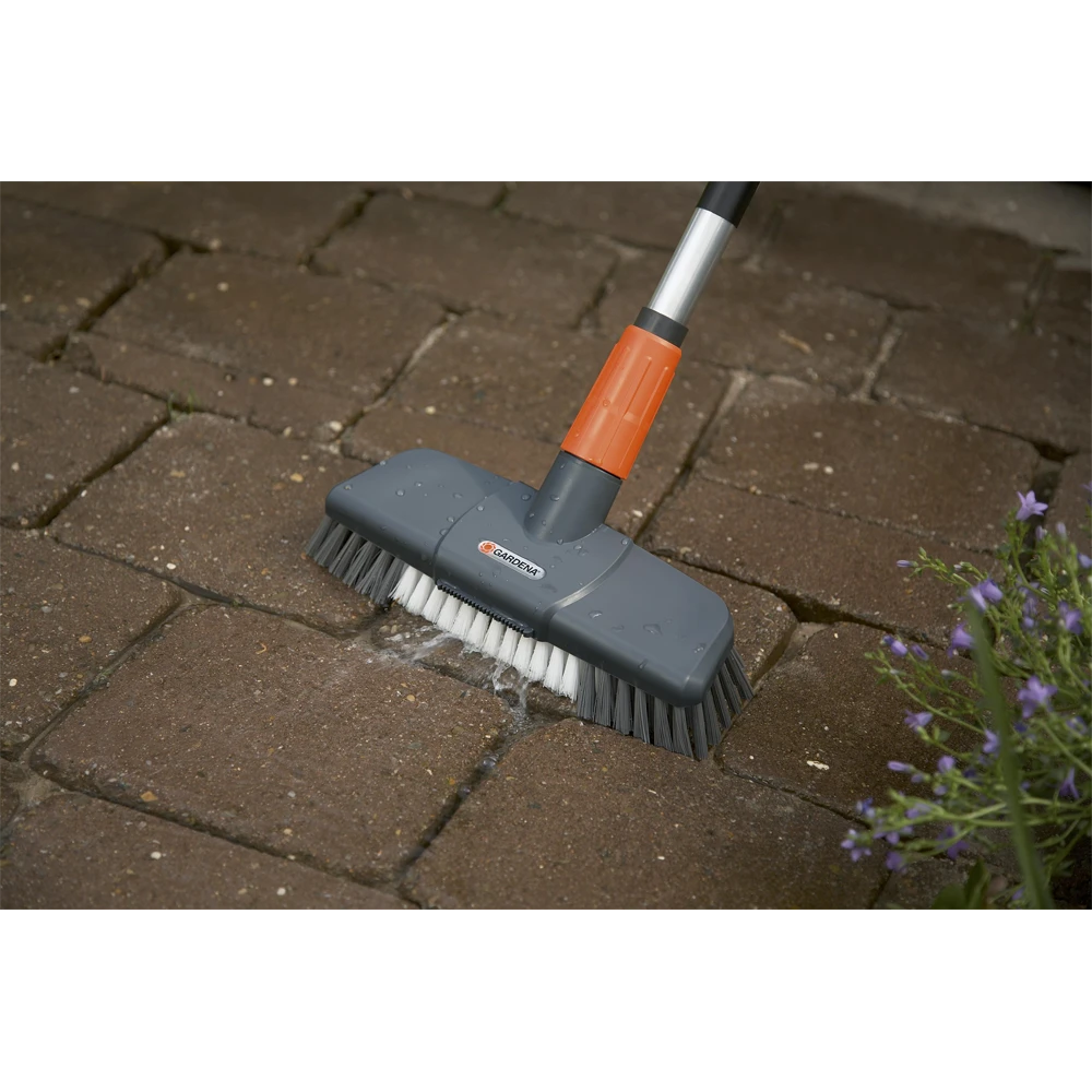 De Comfort schrobber kan op het waterleidingnet en op alle Original GARDENA Cleansystem Waterstelen worden aangesloten. De GARDENA Comfort schrobber kan zelfs hardnekkig vuil verwijderen. Deze accessoire voor het Original GARDENA Cleansystem is 27 cm breed en heeft borstelharen met verschillende lengten, voor een intensieve reiniging van vooral ongelijkmatige vloeroppervlakken, naden en uitsparingen. De speciale platte spuitmond en de schraaprand zorgen dat het reinigen nog gemakkelijker gaat. De Comfort Schuurborstel is zeer geschikt voor het grondig reinigen van robuuste vloeroppervlakken, zoals terrassen, paden en oprijpaden. Gemakkelijk en effectief reinigen – met de GARDENA Comfort schrobber.