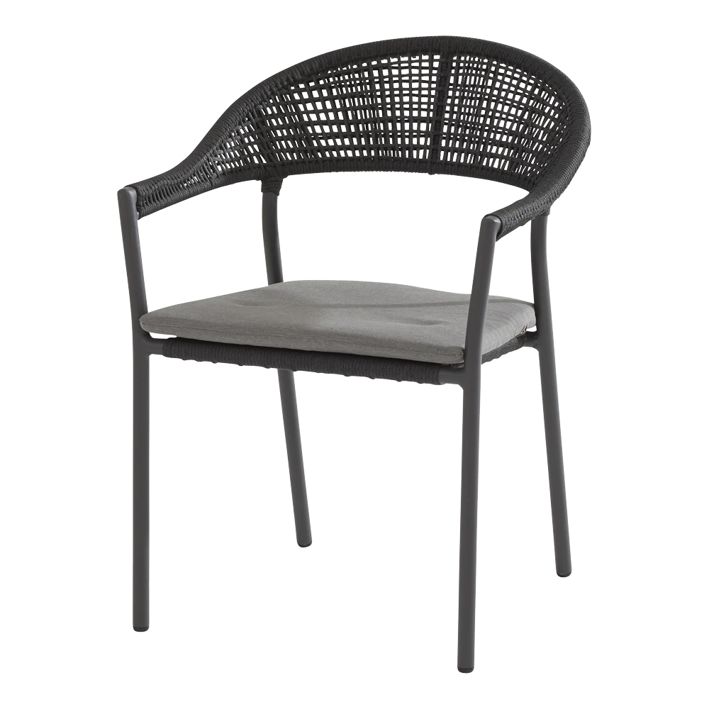 Heerlijk buiten genieten met de Taste by 4 Seasons Outdoor stapelbare Sienna Dining stoel. Deze stijlvolle grijze dining tuinstoel is stapelbaar en heeft een afmeting van 81x62x59cm, waardoor ze niet veel ruimte in beslag nemen om op te bergen. De Sienna dining stoel is gemaakt van RVS en weerbestendig touw. De tuinstoelen van Taste 4SO worden geleverd met 5 jaar garantie en inclusief kussen. Het kussen is gemaakt van hoogwaardig All Weather materiaal, waardoor ze op de stoelen kunnen blijven liggen bij een regenbuitje. Het droogleggen van de kussens raden wij echter aan om een langere levensduur van de kussens te hebben.