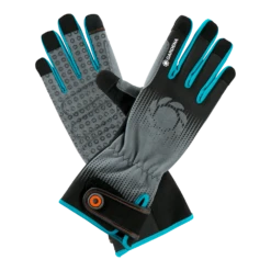 De struikhandschoen in maat M van GARDENA is uw perfecte metgezel bij het snoeien van struiken en het omgaan met dichte ondergroei in de tuin. Deze duurzame tuinhandschoen voor middelgrote handen is gemaakt van een robuust materiaal dat u beschermt tegen schrammen en brandnetels. De lange boord beschermt uw pols en onderarm. Bij het gebruik van tuinsnoeischaren voelt u de hoge kwaliteit van de handschoenen. Bovendien is de stof tussen duim en wijsvinger versterkt, omdat dit gebied vaak erg slijt, wat betekent dat de handschoen lang meegaat. De struikhandschoen is erg comfortabel: de handpalm van de handschoen heeft een siliconencoating. Hierdoor liggen snoeischaren niet alleen goed in de hand, maar kunnen ze niet wegglijden. Zelfs de bediening van een smartphone of tablet is altijd mogelijk dankzij de Mobile Touch-functie op de duim en wijsvinger. Omdat de voor smartphonegebruik geschikte struikhandschoen de Oeko-Tex® Standard 100-certificering heeft, zijn de gebruikte textielsoorten vrij van schadelijke stoffen.