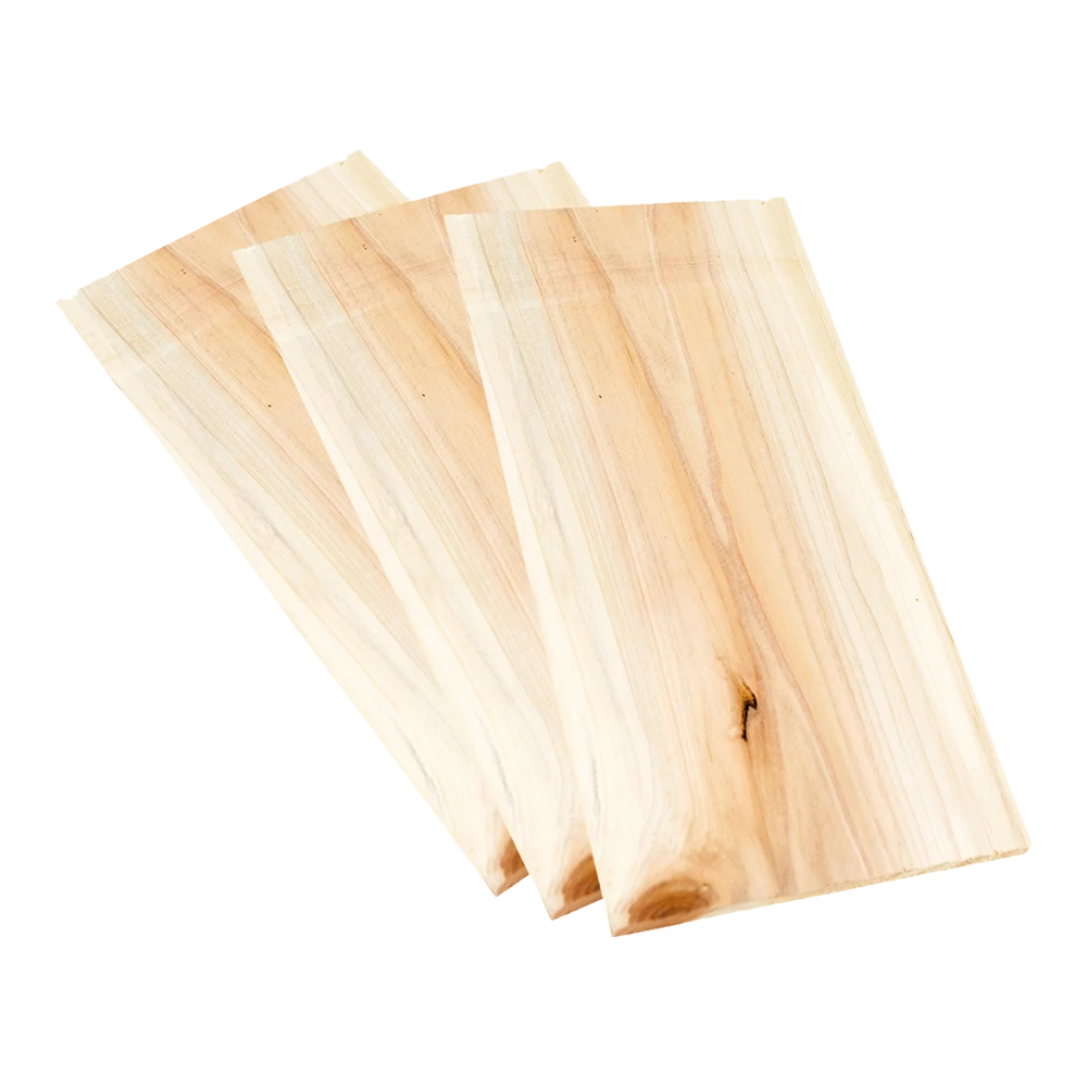 Ceder is een hout soort met het meeste geur van alle bomen. Het geeft gerechten een unieke en speciale smaak. Ideaal voor vis, rund, lam, varken, kip en groente een bijzondere rook smaak te geven. Bevat 100% ceder hout zonder toevoegingen. Leg de planken ten minste 60 minuten voor gebruik in water. Large (3 planken) 30 x 14,5 x 1cm // XL (2 planken) 40 x 19,5 x 1cm.