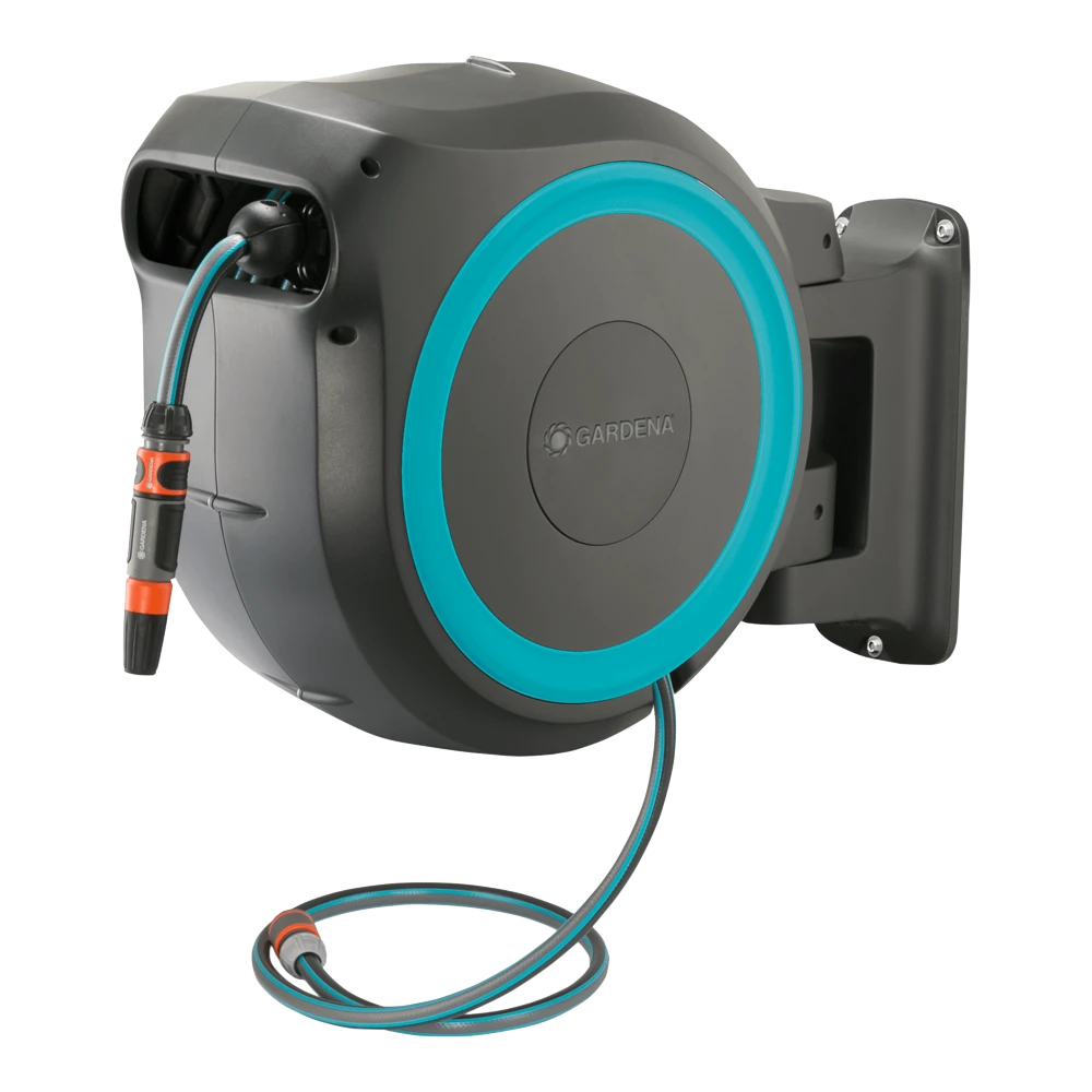 Tuinieren is handiger en gemakkelijker dan ooit met de wandslangenbox RollUp S. Deze helpt uw tuin netjes en opgeruimd te houden en voorkomt hinderlijk struikelgevaar als gevolg van een rondslingerende slang. De praktische slangopslag is eenvoudig aan de muur van uw huis te bevestigen en wordt met een flexibele aansluitslang aangesloten op de kraan. Dankzij de stevige muurbeugel kan de slangenbox meer dan 180 graden worden gedraaid, zodat u elke hoek van uw tuin moeiteloos kunt bereiken. Voor direct gebruik kunt u de tuinslang eenvoudig verlengen tot een lengte van maximaal 15 meter. De tuinslang wordt automatisch in heel korte intervallen vergrendeld zodra u stopt, wat betekent dat de slang eenvoudig en gemakkelijk te hanteren is. Door lichtjes aan het uiteinde van de slang te trekken, wordt de vergrendeling ontgrendeld en een ingebouwde stalen veer met innovatieve RollControl-technologie zorgt voor soepel en gecontroleerd oprollen. De RollControl beschermt de slangenbox en de omgeving tegen schade als gevolg van het te snel inrollen. Om knikken of knopen in de slang te voorkomen, heeft de box een geïntegreerde slanggeleider. Dankzij de slang- en kraanaansluitingen van het Original GARDENA System kunt u eenvoudig en flexibel een verlengstuk of ander compatibel GARDENA element op de slang aansluiten. U hebt altijd uw GARDENA slangopzetstukken bij de hand. Ze kunnen onder de muurbeugel worden bevestigd en daar worden opgeborgen om ruimte te besparen. De GARDENA wandslangenbox is UV- en vorstbestendig en kan het hele jaar door probleemloos aan de muur van het huis blijven bevestigd. Het hoogwaardige materiaal biedt u een lange levensduur en gebruiksgemak zonder onderhoud. Bovendien kan de box niet worden gestolen dankzij de antidiefstalbeveiliging en kan de box alleen door u van de muur worden verwijderd. Samen met de wandslangenbox ontvangt u een muurbeugel, een flexibele aansluitslang, alle benodigde Original GARDENA System en montageonderdelen en een mondstuk met twee verschillende sproeiopties. Bewatering die altijd gebruiksklaar is , dankzij de GARDENA wandslangenbox RollUp S.