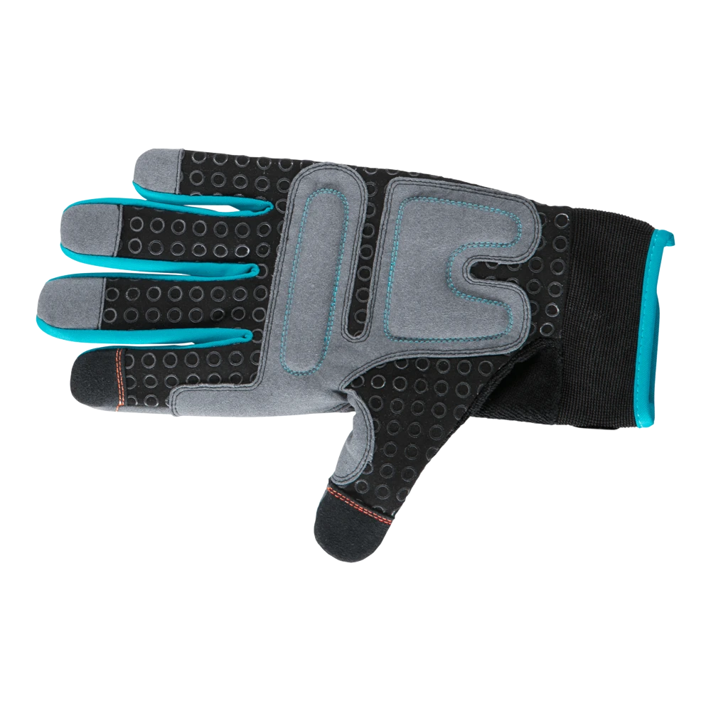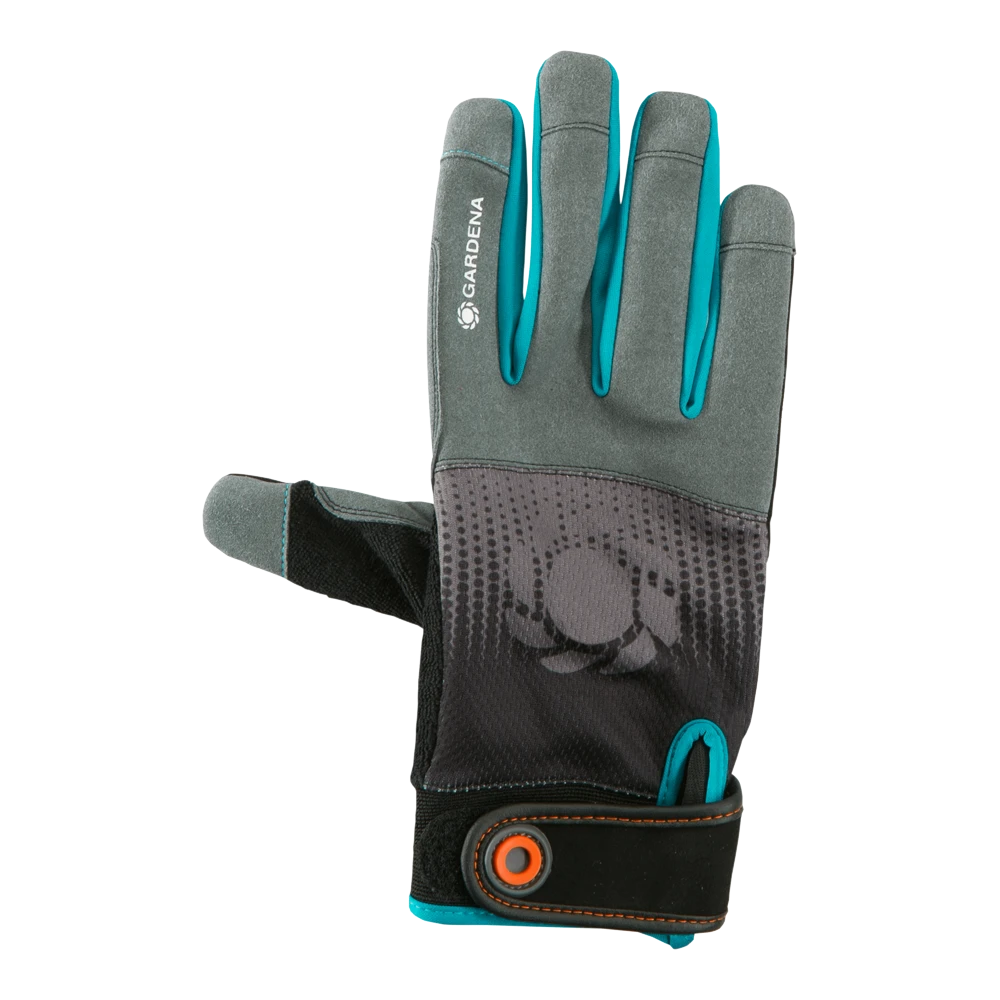 GARDENA heeft de juiste beschermende kleding voor veeleisende werkzaamheden met tuingereedschappen met de handschoen voor gereedschap en hout in maat L. De handpalm van de handschoen heeft een siliconencoating, waardoor gereedschap en apparatuur veilig en comfortabel in de hand kunnen liggen zonder kans op wegglijden. De gewatteerde handpalm maakt het gemakkelijker om gereedschappen vast te pakken. Dit vermindert de schokken bij het hakken van hout en het uitvoeren van andere zware taken aanzienlijk. Het is net zo belangrijk dat een werkhandschoen goed past. De handschoen voor gereedschap en hout voor grote handen voldoet aan deze eis dankzij de praktische sluiting op de polsband, samen met flexibel materiaal op de boord en de achterkant van de hand, wat zorgt voor een perfecte pasvorm. Bovendien is de handschoen ademend dankzij het gebruikte mesh materiaal en de microfleece met zweetabsorptie bij de bal van de duim. Als u uw smartphone tijdens een pauze wilt gebruiken, hoeft u de handschoen niet uit te trekken. De toppen van uw duim en wijsvinger zijn geschikt voor het bedienen van een smart apparaat dankzij de Mobile Touch-functie. Alle textielsoorten in de perfect passende handschoenen die voor smartphonegebruik geschikt zijn, zijn vrij van schadelijke stoffen, zoals wordt bevestigd door de Oeko-Tex® Standard 100-certificering.