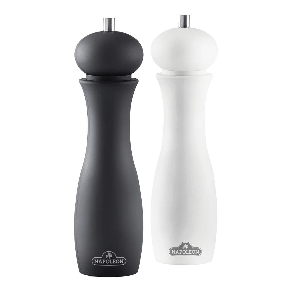 Voeg de perfecte smaak van specerijen toe aan je volgende gegrilde maaltijd met de zout- en pepermolen-set van Napoleon. Deze grote en luxe zout- en pepermolens hebben een gemakkelijk schoon te maken, mat, softgrip oppervlak dat stijlvol genoeg is om op tafel te zetten. De hoogwaardige keramische mechanismen gaan jarenlang mee. Stel met de knopjes aan de bovenkant in voor grove of fijne kruiden.